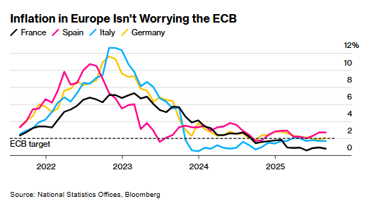 比较之下,当日早间公布的其他国度数据均未达预期:法国通胀率仍保管在0.8%的低位,远低于欧洲央行经营;意大利录得1.7%,接近经营水平;西班牙则达到2.7%,已逾越经营上限。
